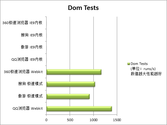 而在考察執行效率的Dom Tests和HTML 5測試中,測試對象的角逐主要集中在對Webkit核心的優化上,其中360極速瀏覽器和QQ瀏覽器脫穎而出,分別摘得Dom Tests和HTML 5測試的桂冠。