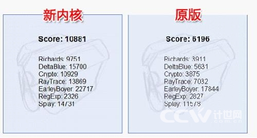 Google V8 Benchmark測試是Google放出的Javascript測試集。V8 Benchmark Suite會載入JavaScript代碼,對系統(tǒng)的內(nèi)核、加密、解密、渲染等進(jìn)行速度測試。