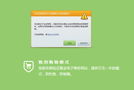 當購物時,打開淘寶瀏覽器的購物模式,會將訪問的網站鎖定在購物網站與網銀網站,保證您的網購安全,真正達到萬無一失。