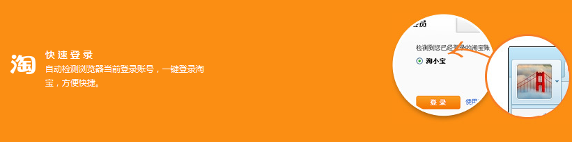 使用淘寶瀏覽器,并通過右上角的登錄框進行登錄,在您訪問淘寶、天貓、一淘、支付寶等網站時,會自動檢測瀏覽器當前登錄的賬號,一鍵登錄,方便快捷。