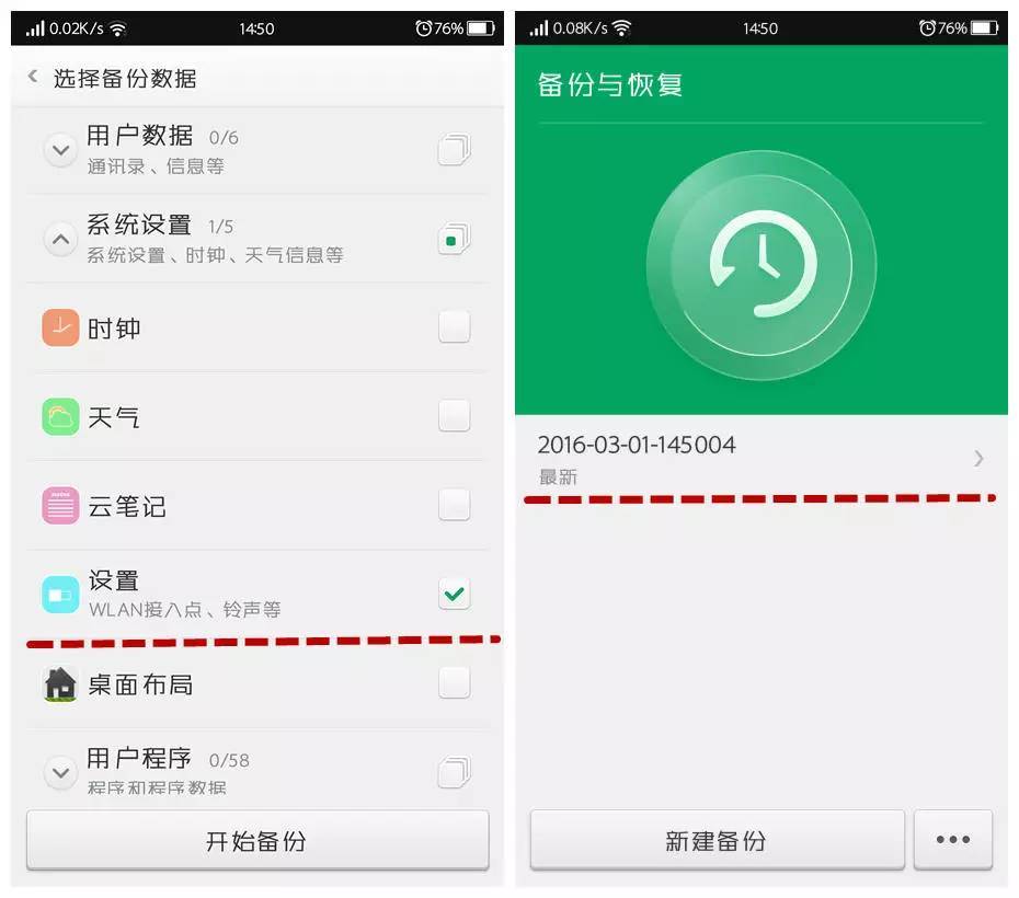 我們進入手機「備份與恢復」,然后「新建備份」,僅備份設置數據即可。備份完成后,記得備份的文件名稱哦。