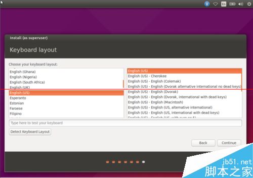 8、進入鍵盤布局配置,我們默認,繼續Continue。