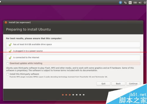 3、此處我們需要注意的是:在安裝Ubuntu桌面系統期間,最好斷開網絡,不然它會安裝過程中連接互聯網進行一些更新,這樣會安裝很慢。因此,我們斷開網絡。