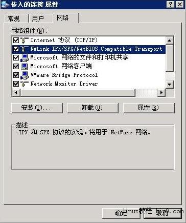 到“網絡”選項卡中,點擊“安裝(I)…”→“協議”選擇包含“IPX協議”那個,點擊確定,如下圖所示: