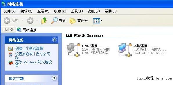打開“網絡連接”,單擊左側“網絡任務”下的“創建一個新的連接”,如下圖所示: