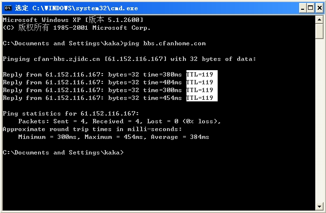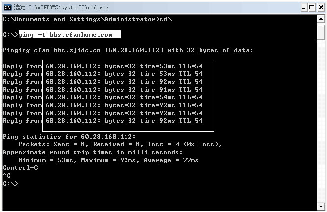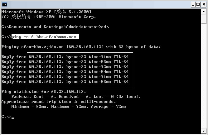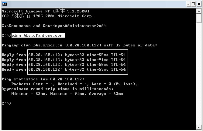現在ping下咱們論壇的域名“ping bbs.cfanclub.net"
