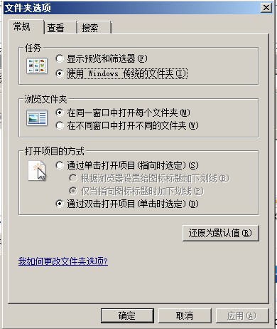 2、切換至“查看”選項卡,找到“始終顯示圖標,從不顯示縮略圖”項,你會發現打勾了,將勾去掉–確定,縮略圖就顯示出來了,步驟如下圖所示: