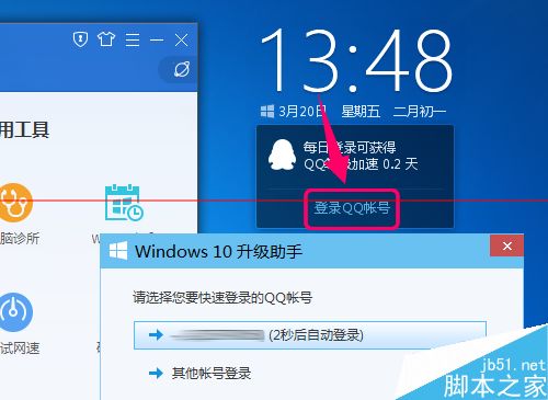 6、再一次啟用Win10升級,現在點擊[登錄QQ帳號]就有反應了,然后你可以從列表里選擇,使用當前QQ或者其他QQ帳號登錄