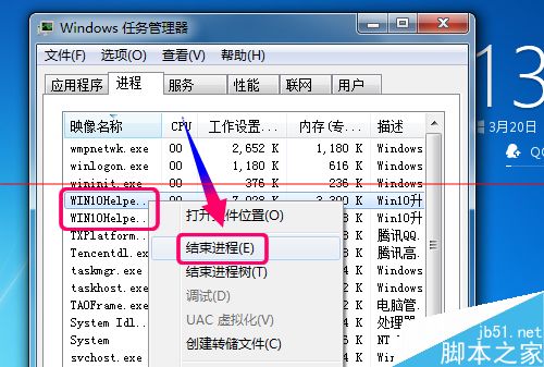 1、如果你無法關閉Win10升級助手,或者無法找到那個關閉按鈕怎么辦?按下鍵盤Ctrl+Alt+Del選擇任務管理器,或者右鍵任務欄選擇任務管理器,選擇名稱排列進程,右鍵關閉進程win10Helper就行了