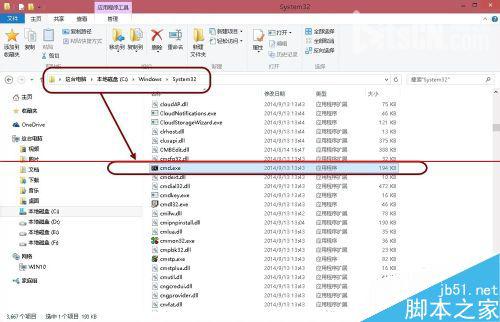 6、這時,可以找到系統盤文件夾Windows/system32中的cmd.exe文件,或者在開始菜單中,找到所有程序 > 附件 > 命令提示符圖標