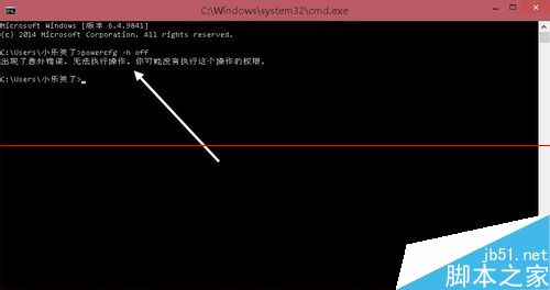 4、命令窗口中輸入 powercfg -h off,即可關閉休眠功能,同時 Hiberfil.sys 文件也會自動刪除。