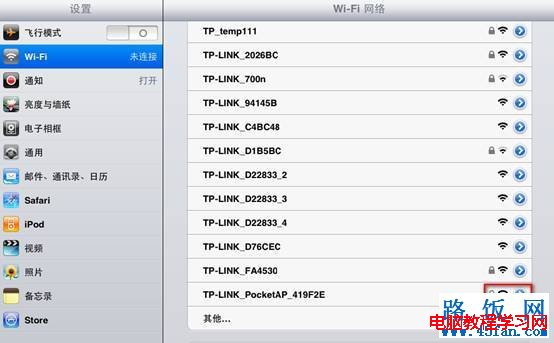 STEP1:打開IPAD主界面,選擇“設(shè)置”菜單,選擇“Wi-Fi”,進(jìn)入Wi-Fi設(shè)置頁面,如下圖所示。