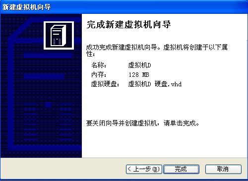 點(diǎn)擊完成,完成配置工作.此時(shí)會(huì)顯示虛擬機(jī)已成功創(chuàng)建:
