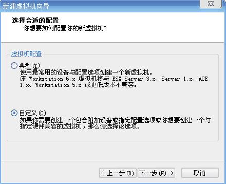 1.2.2配置虛擬機(jī)時(shí),要注意自己的需要,這個(gè)實(shí)驗(yàn)中我要在虛擬機(jī)上安裝的是LINUX系統(tǒng),所以,我們選擇自定義來(lái)實(shí)現(xiàn)自己需要的配置: