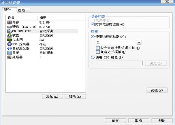 1.3.2激活硬件CD-ROM選項(xiàng),在右邊選擇虛擬機(jī)系統(tǒng)的安裝方式: