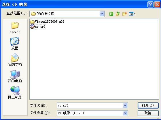 2.3.3,點(diǎn)載入ISO映像,就是教程開始提示下載的XP SP3鏡像文件,如圖;