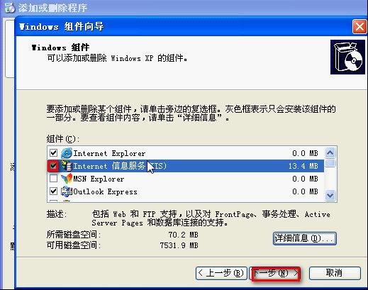 2. 選擇Internet 信息服務(wù)(IIS)點擊下一步;