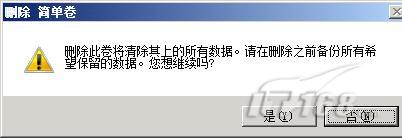 其次用鼠標(biāo)選中其他幾個(gè)需要合并的磁盤分區(qū),并用鼠標(biāo)右鍵單擊它們,從彈出的快捷菜單中點(diǎn)選“刪除卷”選項(xiàng),隨后屏幕上將會(huì)出現(xiàn)如圖6所示的對(duì)話框,該對(duì)話框會(huì)提醒我們?cè)诤喜⑵渌謪^(qū)之前,一定要做好數(shù)據(jù)備份工作;單擊該對(duì)話框中的“是”按鈕,Windows Server 2008系統(tǒng)會(huì)自動(dòng)將那些處于選中狀態(tài)的磁盤分區(qū)刪除掉,這些磁盤分區(qū)的空間容量同時(shí)會(huì)出現(xiàn)在“可用空間”區(qū)域處;