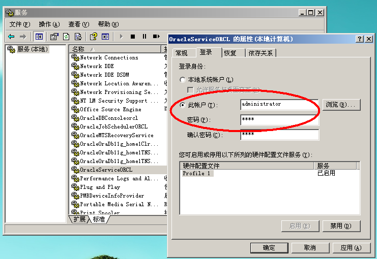 在生產庫上,以administrator身份啟動數據庫服務 (控制面板-管理工具-服務-屬性-登錄 改為administrator),如下圖: