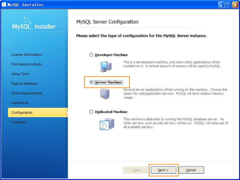 選擇“Server Machine”,再選擇“Next”按鈕繼續(如圖15)。