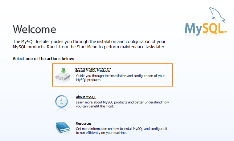 MySQL安裝:雙擊安裝包進入安裝環境界面,選擇“Install MySQL Products”(如圖8)。