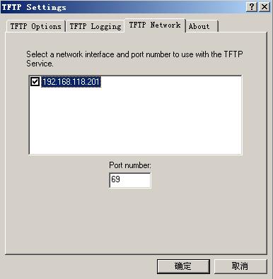 打開服務器的“控制面板”,雙擊“Venturcom TFTP Service”圖標,出現“TFTP Settings”對話框,單擊“TFTP Network”標簽,將TFTP服務綁定到相關的IP地址上,本例為198.168.118.201,單擊“確定”按鈕,結束BXP的TFTP的設置。(圖9)