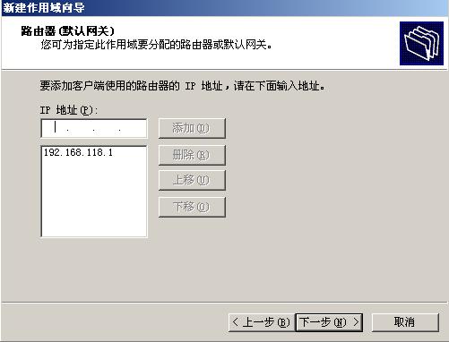 一直點下一步,當提示"路由器(默認網關)"這時填入你的路由器的IP地址,既工作站的網關,如192.168.118.1,(圖6),