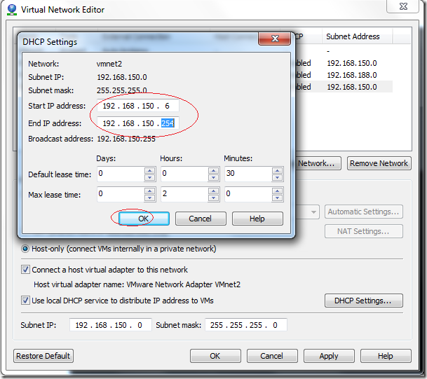 稍后再將虛擬網卡vmnet2的IP設置為:192.168.150.6