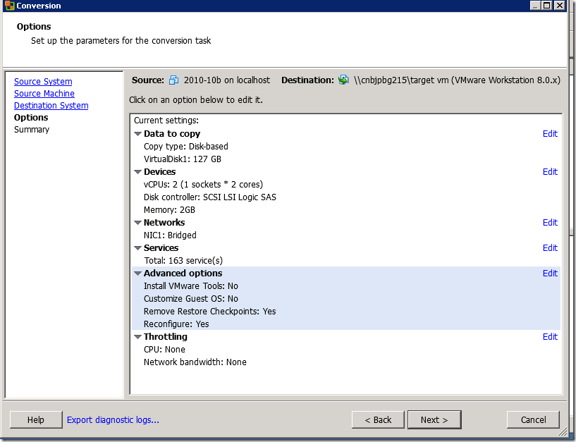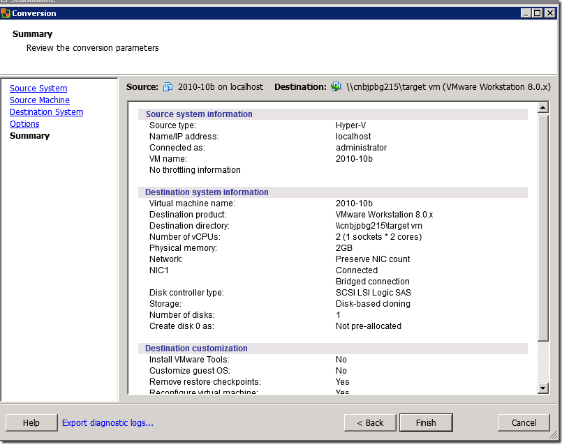 這里講述的是將hyper-v虛擬機轉成vmware虛擬機的辦法,具體步驟如下: