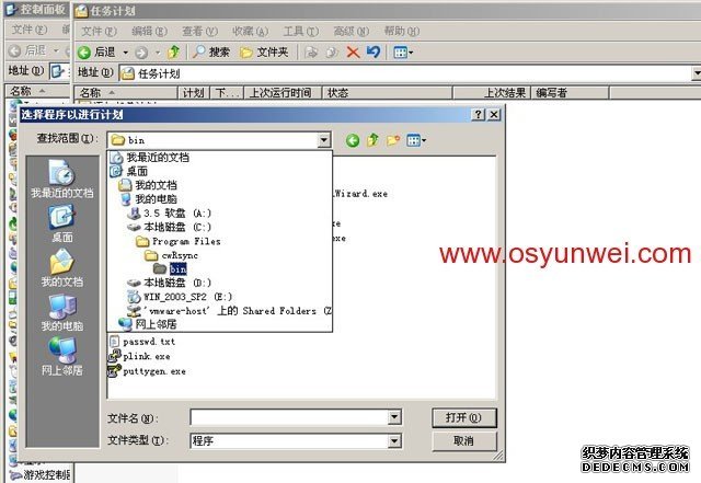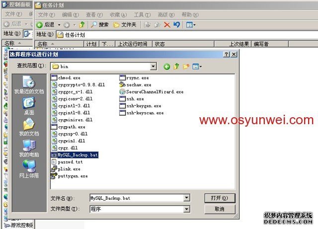 瀏覽,選擇打開C:Program FilescwRsyncbin目錄里面的MySQL_Backup.bat