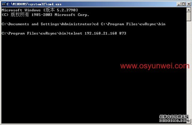 再輸入telnet 192.168.21.168 873 回車