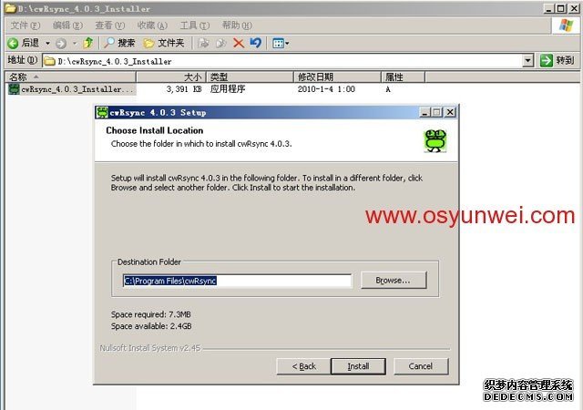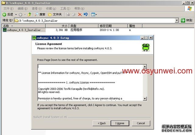 解壓cwRsync_4.0.3_Installer.zip 雙擊打開cwRsync_4.0.3_Installer.exe