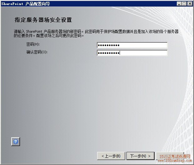 和SharePoint2007不同,多了一個服務器的安全密碼: