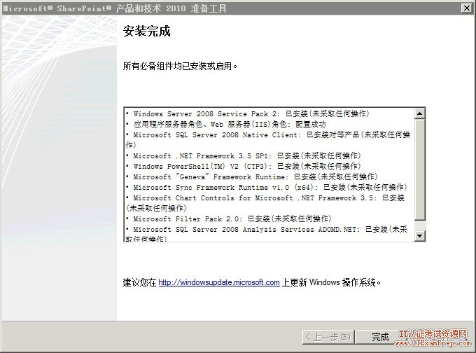 首先安裝系統必備軟件,如果機器可以連接互聯網,將會自動下載這些軟件,不能連接互聯網就只能自己手工下載了,具體需要下載的軟件,請參考如下連接:SharePoint 2010安裝必備組件下載鏈接