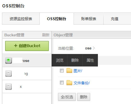 OSS控制臺分為BUCKET管理、與Object管理兩大模塊。