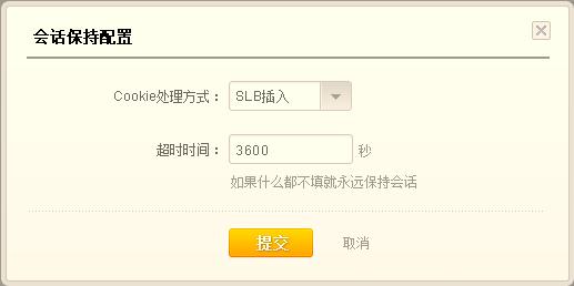 1)當您選擇“SLB植入cookie”的Cookie處理方式時,需要您設置具體的超時時間,如果您什么都不填就永遠保持會話。