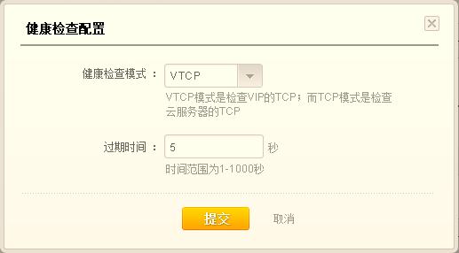 1)當您選擇“VTCP”的健康檢查模式時,需要您設置具體的過期時間;