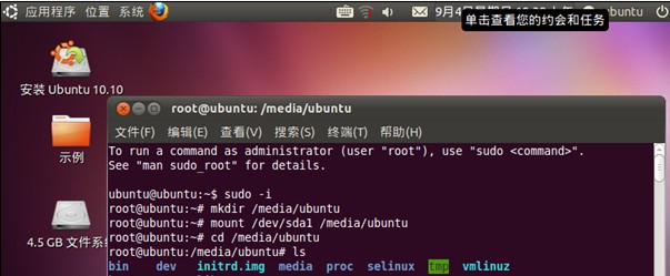 接著輸入mkdir /media/ubuntu(這里用于創建一個文件夾ubuntu,用于掛載剛才的sda1,此文件夾名稱你可以依個人愛好而定,沒有太多要求)