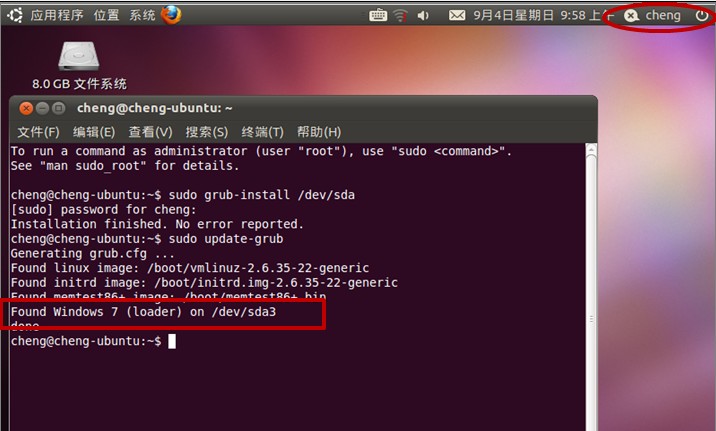 重啟后進入本機Ubuntu系統,在終端中執行以下命令