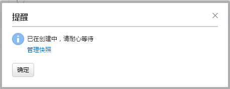 點擊如藍框線所示的“創(chuàng)建快照”,出現(xiàn)創(chuàng)建快照對話框。