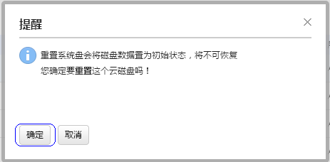在云磁盤列表中單選一臺云服務器的系統盤,然后點擊“重置”。