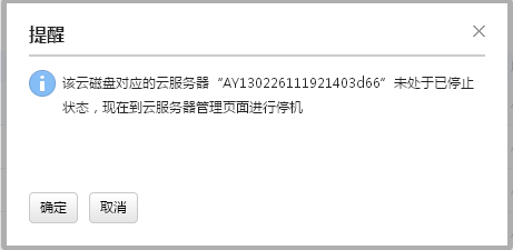 確認之后,會進行云服務器的狀態檢查,如果處于不是處于“已停機”狀態,會進行提醒。