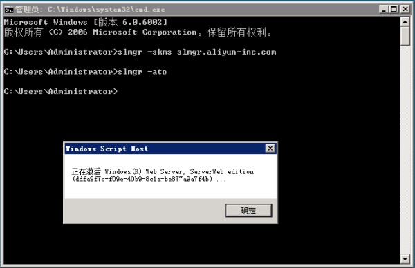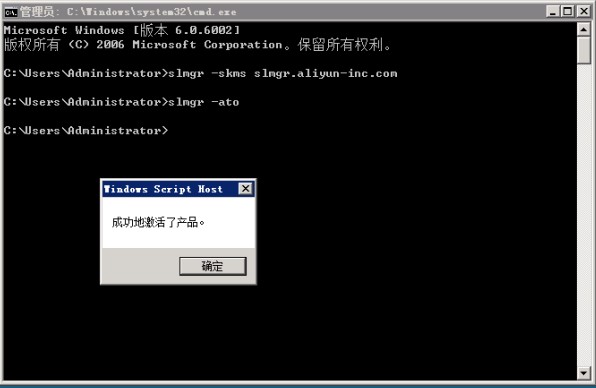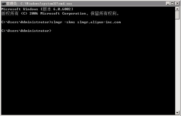 3、輸入slmgr -skms slmgr.aliyun-inc.com