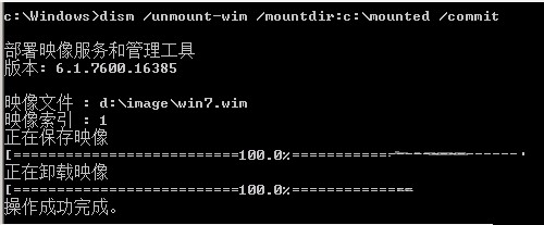 6.保存對鏡像的修改,命令格式如下:dism /unmount-wim /mountdir:c: