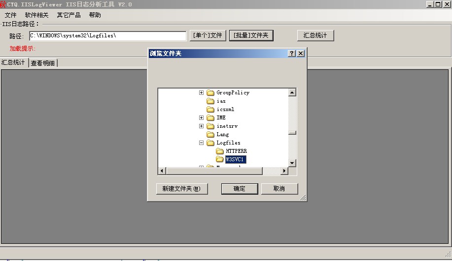 2:可以選擇單個IIS日志文件分析或整個站點文件夾進行分析,這里點擊“批量文件夾”,選擇要分析的IIS日志文件目錄,如下圖: