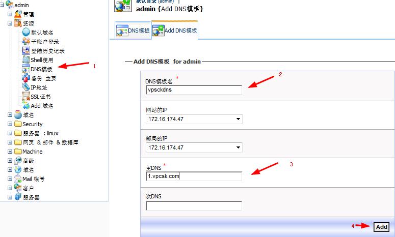 密碼改好后,在創建站點前我們需要先設置個 dns模版