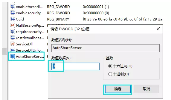 如果允許網絡共享,雙擊打開AutoShareServer,把數值數據修改1,點擊確定。