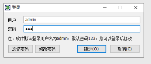 在下方點擊【登錄用戶設置】,彈出窗口,雙擊打開admin用戶,根據提示修改密碼,依次點擊確定,然后設置軟件在后臺運行。