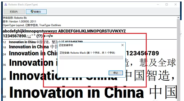 出現提示,正在安裝字體,等待安裝成功,