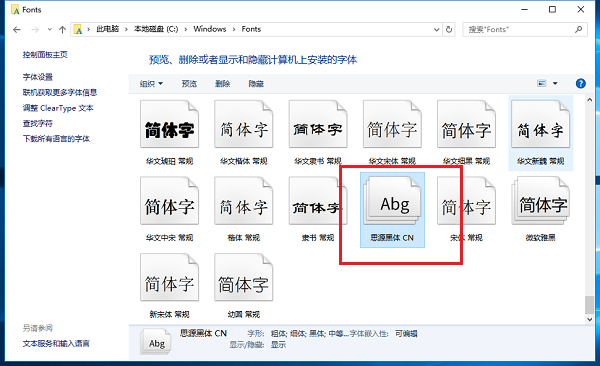 字體安裝完成,進去C:/Windows/Fonts路徑,檢查字體是否安裝在電腦中。